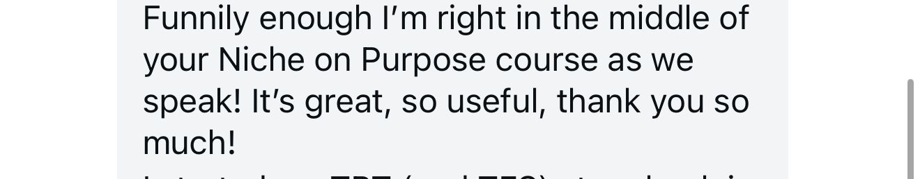 So here’s the deal: if you go through Niche on Purpose and feel stuck on your niche even after implementing the framework, just reach out. I’ll personally review your notes and help you get unstuck.